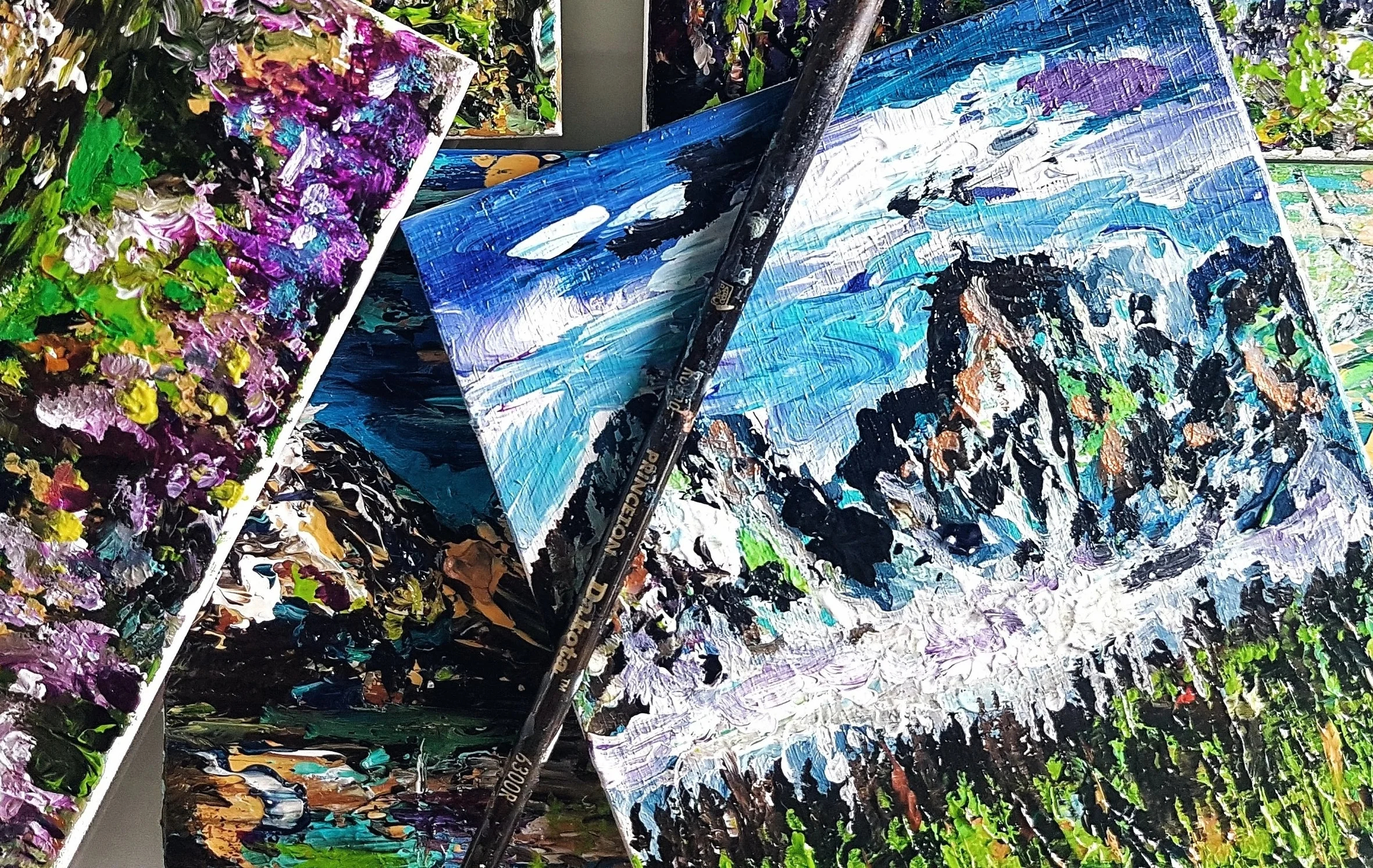 - Each gallery has 150 paintings up that are all the same size on small wooden blocks